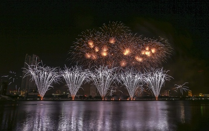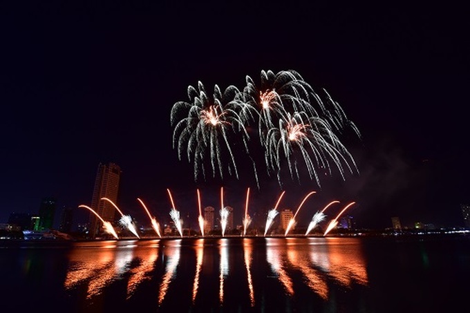 Với 700 quả pháo nước, đội Anh đã biến sông Hàn (Đà Nẵng) như một tấm gương thần bung nở ra một miền lấp lánh.