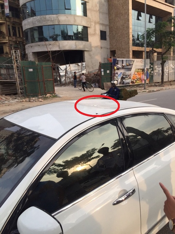 Vụ tai nạn trên xảy ra vào khoảng 17h15 chiều ngày 17/10, tại đường Lê Đức Thọ (quận Nam Từ Liêm, Hà Nội). Khi đó, một phụ nữ điều khiển xe ô tô 4 chỗ đang lưu thông trên đường, bất ngờ bị 1 đoạn sắt to rơi trúng làm lõm phần nóc xe, khiến người này bị phen hoảng loạn.