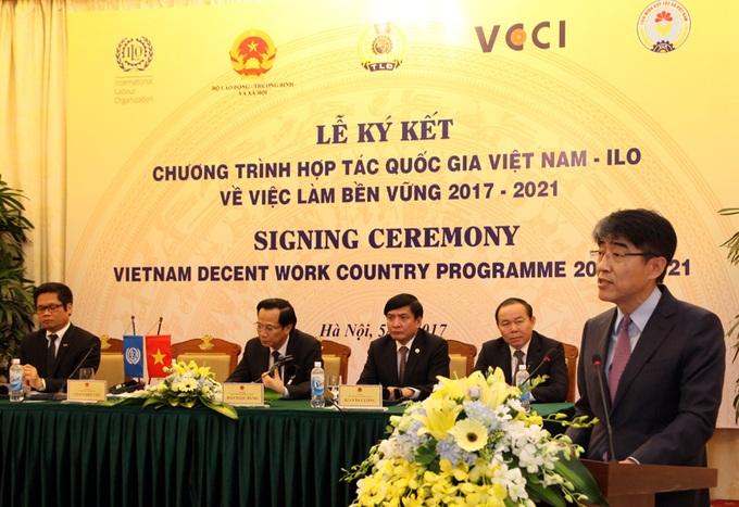 Phát biểu tại Lễ ký kết, Giám đốc ILO Việt Nam, ông Chang-Hee Lee nhấn mạnh, chương trình hợp tác giai đoạn 2017-2021 nên được sử dụng như pha chuyển đổi sang một hình thức hợp tác và đối tác mới, từ việc tập trung vào nguồn lực sang tập trung vào kiến thức. Trong giai đoạn này, sự hỗ trợ cần được đồng thời dành cho các đối tác ba bên (Chính phủ, người lao động và người sử dụng lao động) ờ cấp địa phương nhằm trang bị cho họ năng lực tổ chức để tiến hành những thay đổi mang tính bền vững. Ông Chang Hee Lee cũng cam kết cùng chung sức với các đối tác ba bên để đạt được những mục tiêu chung
