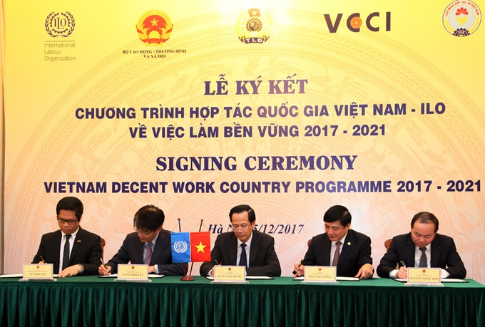 Tại buổi lễ, Bộ trưởng Bộ Lao động-Thương binh và Xã hội Đào Ngọc Dung, lãnh đạo của các đối tác xã hội gồm Chủ tịch Phòng Thương mại và Công nghiệp Việt Nam Vũ Tiến Lộc, Chủ tịch Tổng Liên đoàn Lao động Việt Nam Bùi Văn Cường, Chủ tịch Liên minh Hợp tác xã Việt Nam Nguyễn Ngọc Bảo và Giám đốc ILO Việt Nam Chang-Hee Lee đã cùng ký kết vào văn kiện khuôn khổ hợp tác.