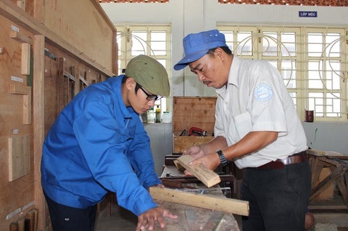 Thầy giáo hướng dẫn nghề mộc ở làng SOS