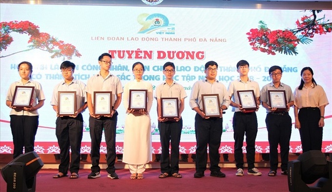 LĐLĐ thành phố Đà Nẵng đã tuyên dương, trao quà, giấy chứng nhận và học bổng giá trị 1 triệu đồng/ suất cho 20 học sinh xuất sắc, đạt giải thưởng cao trong các kỳ thi học sinh giỏi cấp quốc gia, quốc tế.
