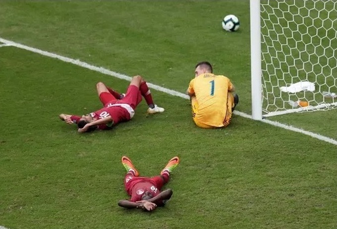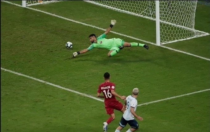 Thủ môn Armani sau tình huống thoát hiểm khi đối mặt hai chân sút Qatar
