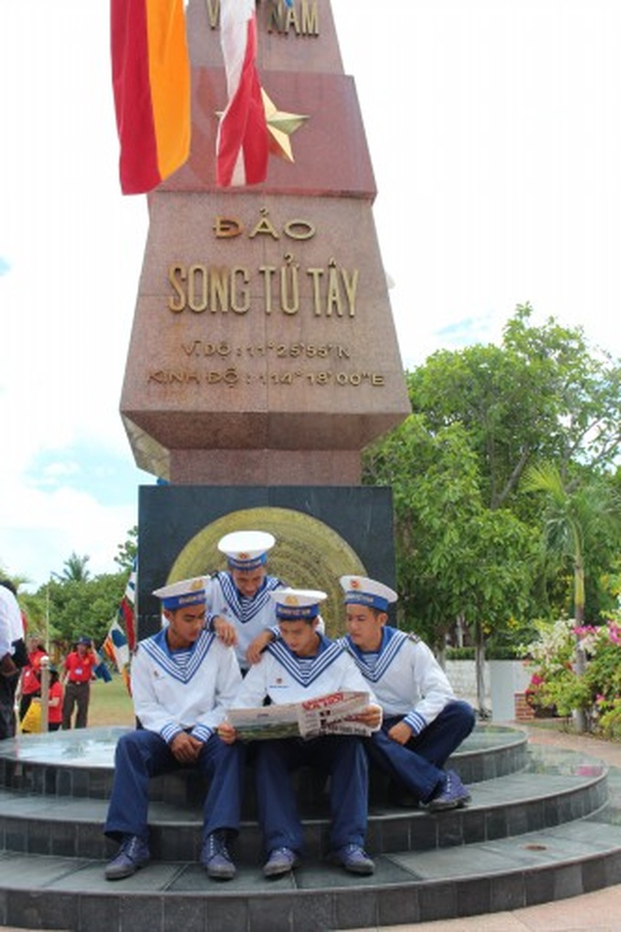 Nhà báo Nguyễn Tri Thức trong chuyến tác nghiệp tại Trường Sa.
