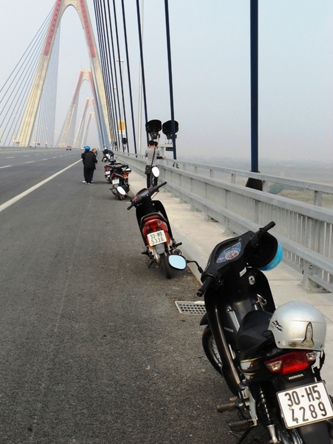 Mặc dù Sở GTVT đã có quy định về việc dừng, đỗ xe, chụp ảnh trên cầu Nhật Tân, dọc cây cầu nghìn tỷ này đã có nhiều biển báo “Không dừng xe, không trèo lan can”.