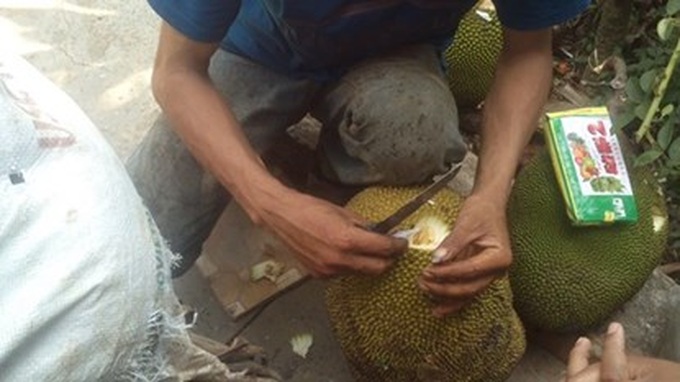 Một chủ lò mít bơm thuốc ép chín vào trái mít.(ảnh vov)