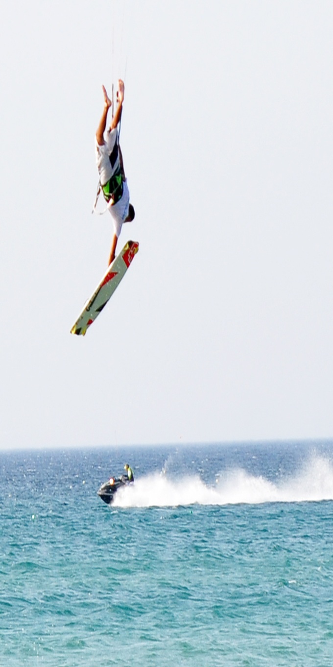 Một cậu bé ở làng chài Nhơn Lý được ông cõng trên vai dùng điện thoại ghi lại những màn nhào lộn trên biển. Ông Hà (ngụ TP Quy Nhơn) thổ lộ, nghe có trực thăng và vận động viên về đây trình diễn nên cả gia đình gác lại mọi công việc ra xem.