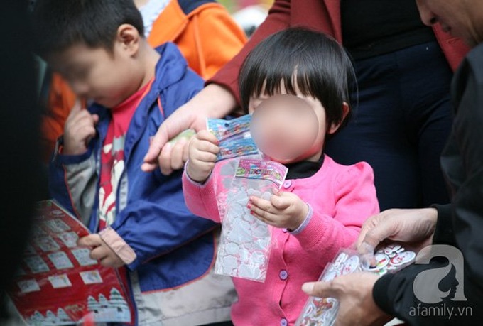 Thật vậy, chỉ trong khoảng 30 phút đồng hồ đứng quan sát, chúng tôi đã ghi nhận gần 10 trường hợp khách hàng "nhí" được chính cha mẹ dẫn đến khu vực Hàng Mã để mua những miếng dán hoạt hình này về chơi. Đứa trẻ này do được cha mẹ cho phép nên thoải mái lựa chọn cho mình những miếng dán xinh xắn, bắt mắt và hợp với mùa Giáng sinh nhất.