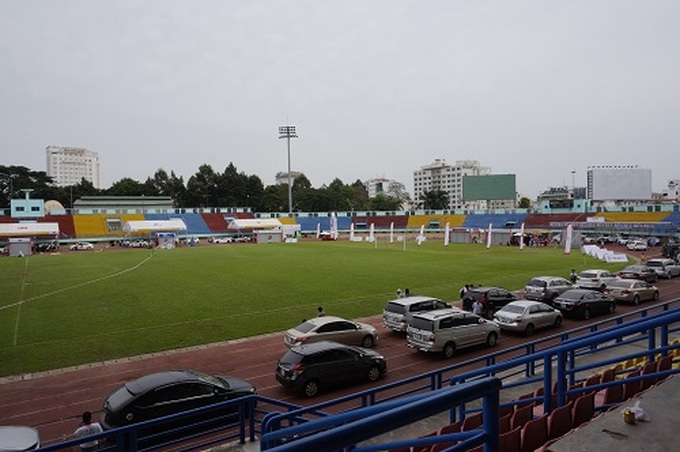 Hàng xe nối dài trong sân vận động Quân khu 7 tham dự chương trình