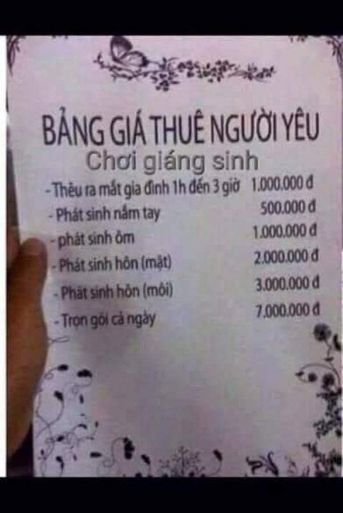 Sáng 25/12, mạng xã hội đang xôn xao một dịch vụ lạ vừa được khởi xướng, dịch vụ thuê người yêu đi chơi Giáng sinh.