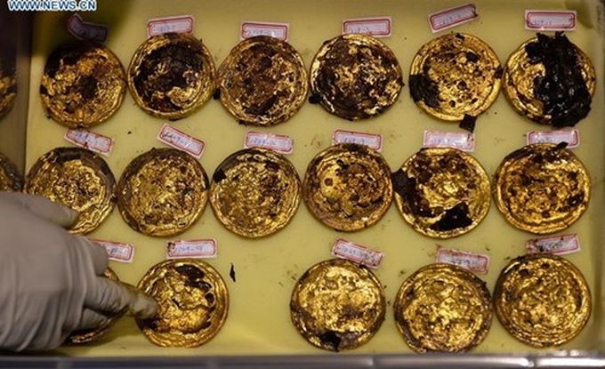 Tại đây, các nhà khảo cổ học đã phát hiện thêm 96 “bánh vàng” tại cổ mộ 2.000 năm tuổi, nâng tổng số “bánh vàng” được tìm thấy tại đây lên tới 285 chiếc – nhiều nhất trong số các lăng mộ thời Hán từng được khai quật.