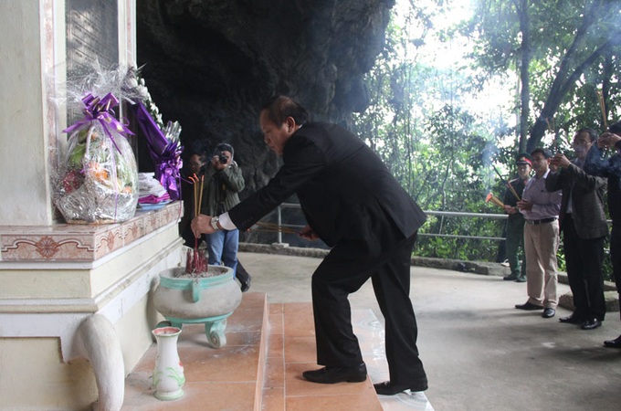 Thứ trưởng Bộ TT&TT Trương Minh Tuấn thắp hương tưởng niệm 13 liệt sỹ thông tin liên lạc hy sinh tại hang Lèn Hà.
