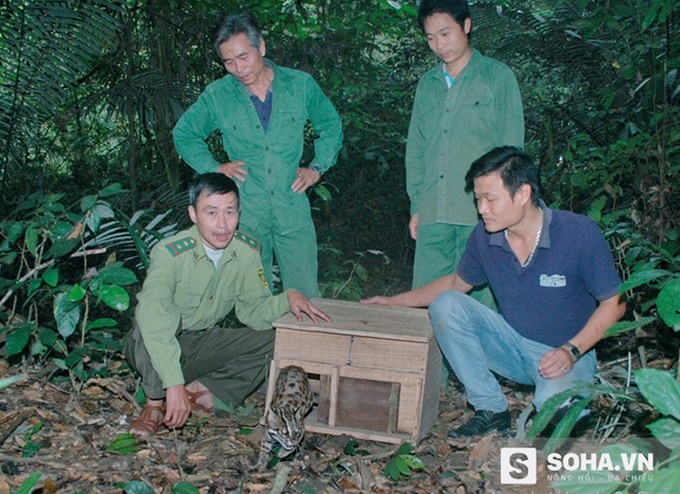 Cán bộ trung tâm cứu hộ thả mèo rừng về với tự nhiên.