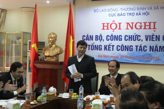Ông Tô Đức, Phó cục trưởng trình bày kết công tác bảo trợ xã hội năm 2015 và phương hướng, nhiệm vụ năm 2016