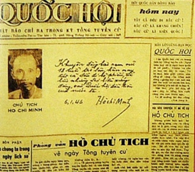 Ngày 31/12/1945, Bác viết bài đăng trên báo Cứu quốc số 130. Bác kêu gọi: “Tổng tuyển cử là một dịp cho toàn thể quốc dân tự do lựa chọn những người có tài, có đức, để gánh vác công việc nhà nước. Trong cuộc tổng tuyển cử, hễ là người muốn lo việc nước thì đều có quyền ra ứng cử, hễ là công dân thì đều có quyền đi bầu cử. Không chia gái trai, giàu nghèo, tôn giáo, nòi giống, giai cấp, đảng phái, hễ là công dân Việt Nam thì đều có hai quyền đó. Do tổng tuyển cử mà toàn dân bầu ra quốc hội, quốc hội bầu ra chính phủ, chính phủ đó thật sự là chính phủ của toàn dân”.
