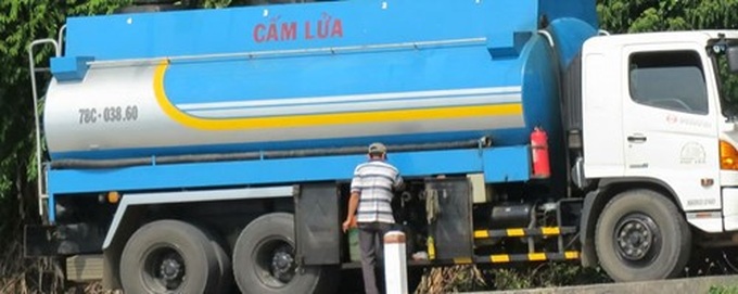 Cách đó vài mét là xe bồn 78C-038.60 đậu phía trước. Tài xế cũng mở nắp van, chiết dầu sang can nhựa bên hông xe. Trong khi chờ dầu chảy sang can nhựa, người này liên tục đảo mắt nhìn xung quanh kiểm tra xem có người theo dõi hay không.