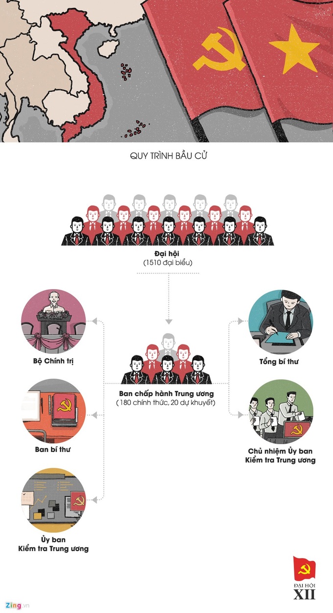 Đại hội Đảng XII có 1.510 đại biểu tham dự. Chiều 23/1, Đại hội đã thảo luận và chốt số lượng Ban chấp hành khóa mới gồm 180 ủy viên Trung ương chính thức và 20 ủy viên dự khuyết. Ngày 26/1, đại hội bỏ phiếu bầu Ban chấp hành Trung ương khóa XII. Ban Chấp hành Trung ương họp thường lệ sáu tháng một lần; họp bất thường khi cần. |