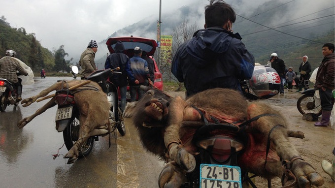 Nghé chết rét ở xã Tả Phìn, Sa Pả được chở đi giết thịt - Ảnh Thanh Niên