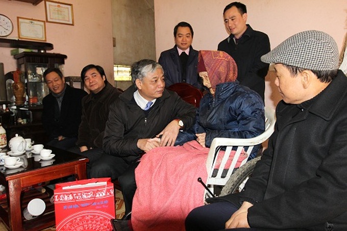 Thứ trưởng Doãn Mậu Diệp cùng Đoàn công tác tới thăm Mẹ Việt nam anh hùng Vũ Thị Nhím, 95 tuổi tại thôn Công Tum, xã Cao Kỳ.