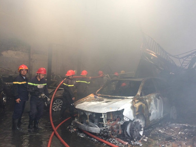 Theo nghi nhận từ bên ngoài hiện trường, có ít nhất 6 xe ô tô bị cháy rụi; 7 xe ô tô may mắn được chuyển ra ngoài thành công. Thượng tá Bảo cho biết thêm, chủ garage ô tô tên Đỗ Quang Thường.