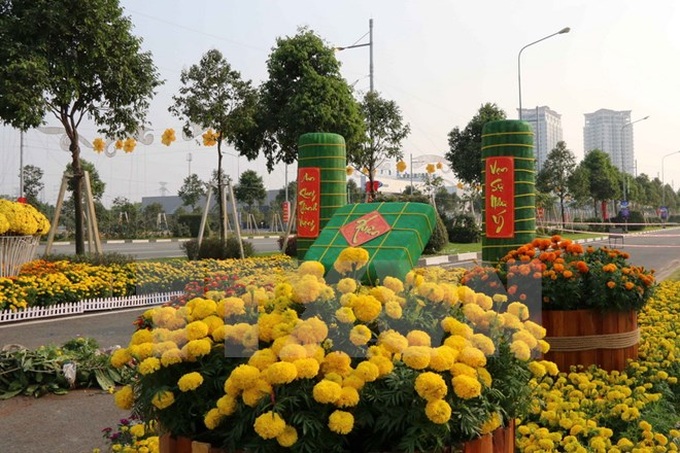 Một góc đường hoa nghệ thuật. (Ảnh: Quách Lắm/TTXVN)