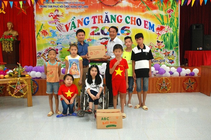 Đến với Trung tâm Phục hồi chức năng Việt - Hàn, nơi nuôi dưỡng, phục hồi 120 trẻ em khuyết tật. Tại đây, các trẻ khuyết tật được sự chăm sóc tận tình, yêu thương của tập thể 45 cán bộ, giáo viên, kỹ thuật viên của Trung tâm, đã có nhiều chuyển biến về mặt trí tuệ và sức khỏe. Tại các Trung tâm, Phó Cục trưởng Cục Bảo trợ xã hội cùng các thành viên trong đoàn đã trao tặng những phần quà bánh kẹo tới các trẻ khuyết tật, để các em đón Tết Trung thu đầm ấm, ý nghĩa.