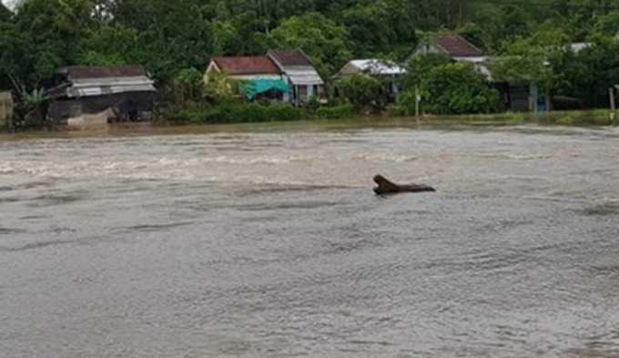 Nước lũ tràn qua đường tại tỉnh Phú Yên
